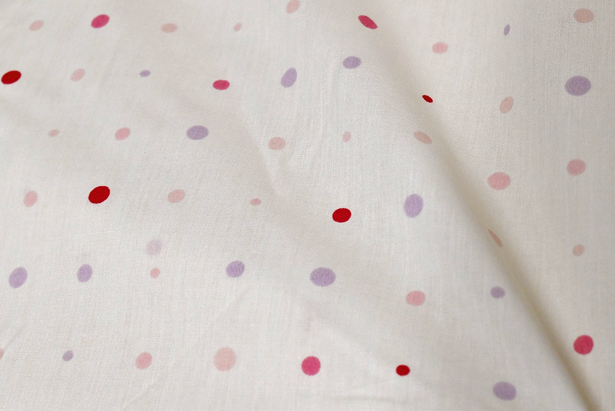 かわいいシャワードット水玉プリント。両面同柄です。サイズSL:150×210cm生地・素材ポリエステル65%・綿35%Made in Chinaカラー2