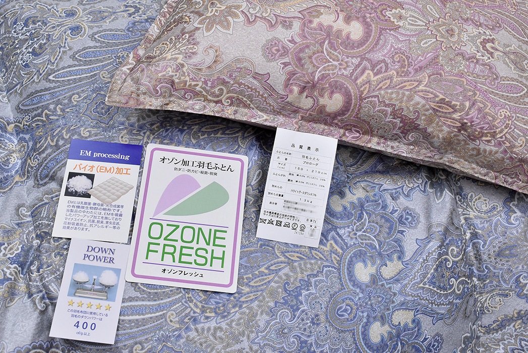 防ダニ、防カビ、殺菌、脱臭 オゾン加工羽毛ふとん。