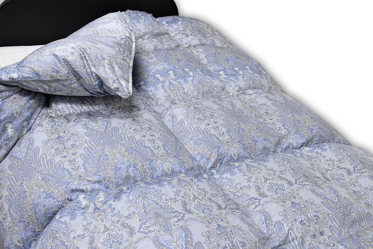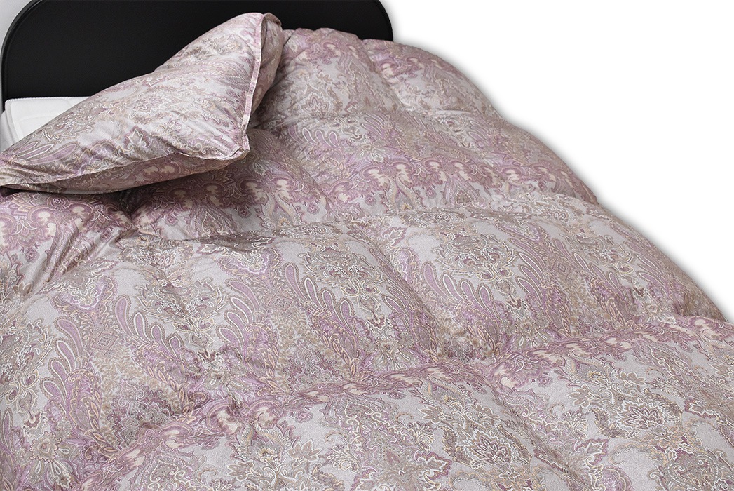 羽毛ふとんは体に負担をかけにくい軽量のおふとんです。内部マチ付き立体キルト加工により羽毛が片寄らず、からだ全体にフィットして、暖かさを保ちます。