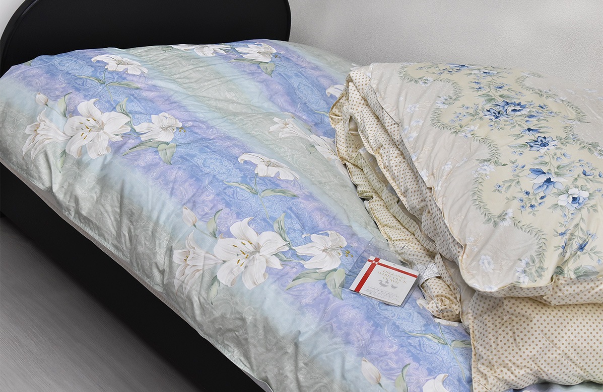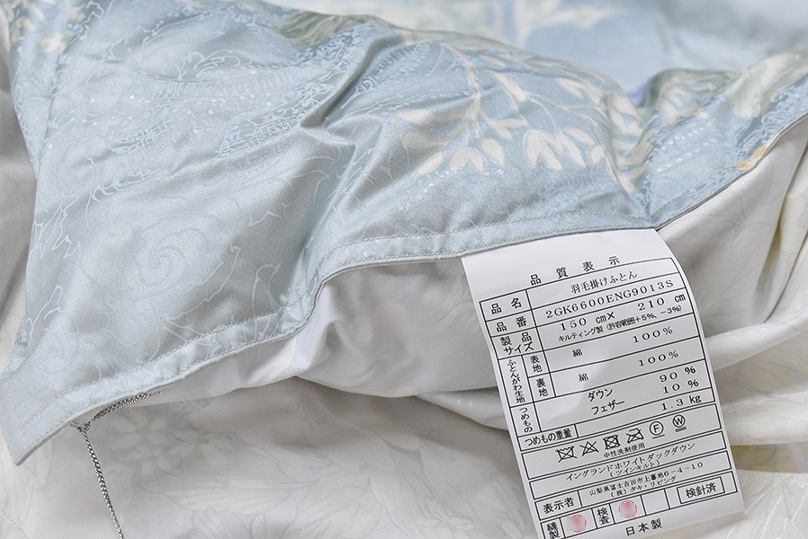 裏生地:綿100%ダウン90%・フェザー10%、1.3kg入