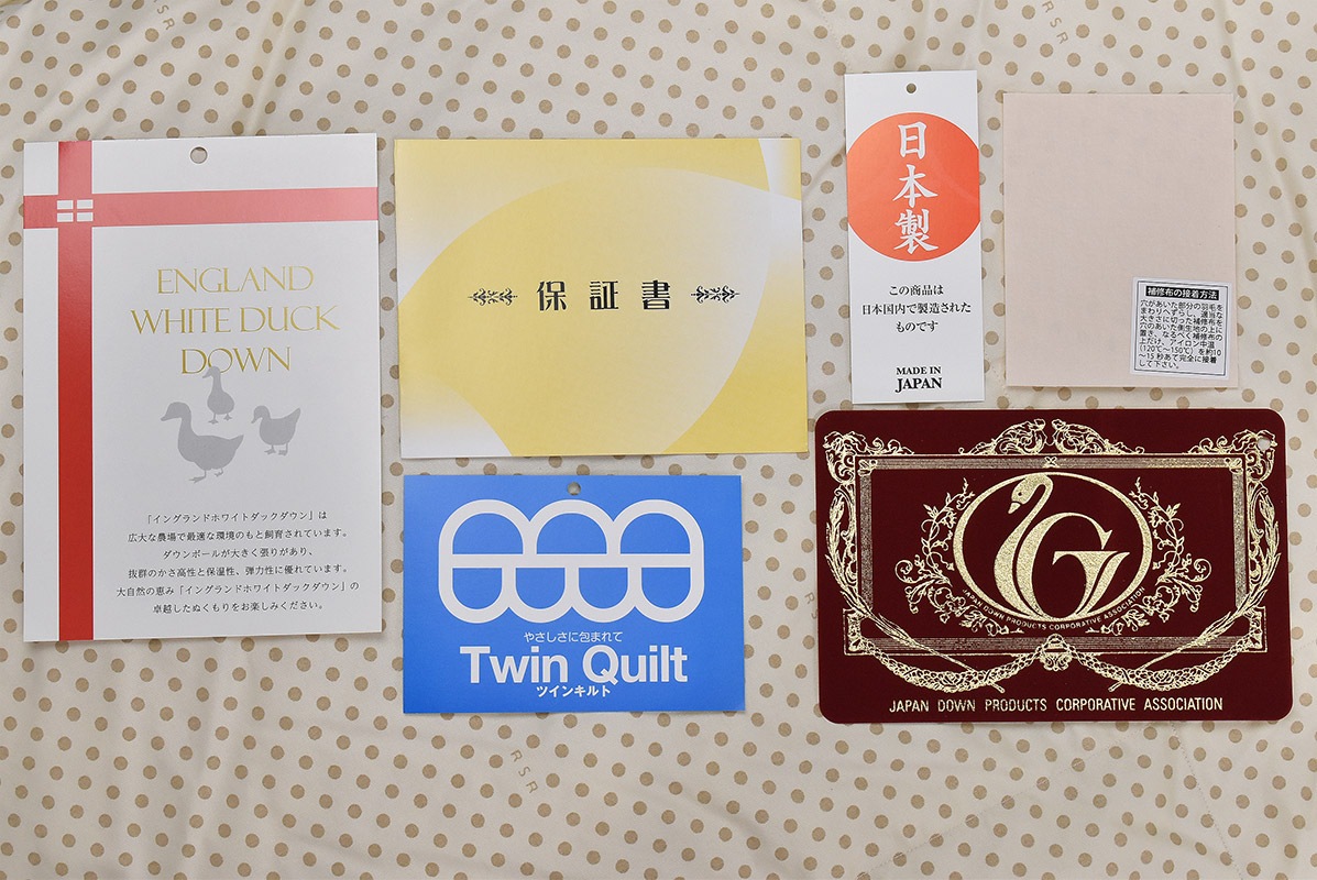 このエクセルゴールドラベルの付いている羽毛ふとんは、日本羽毛製品協同組合の品質基準に合格したものです。