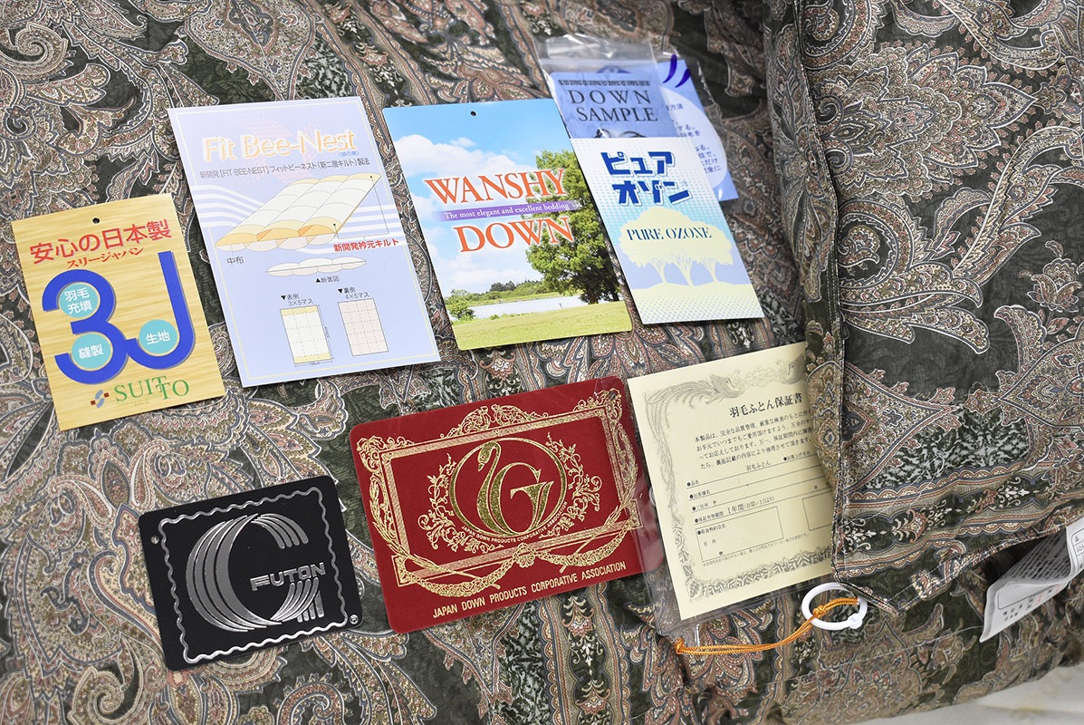 このエクセルゴールドラベルの付いている羽毛ふとんは、日本羽毛製品協同組合の品質基準に合格したものです。