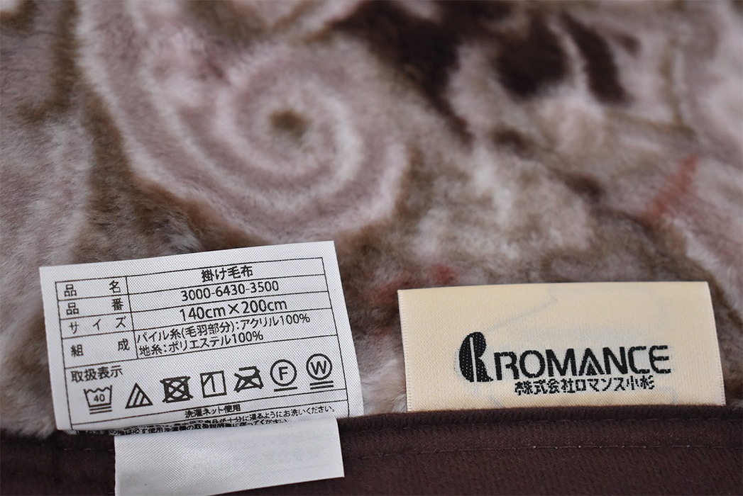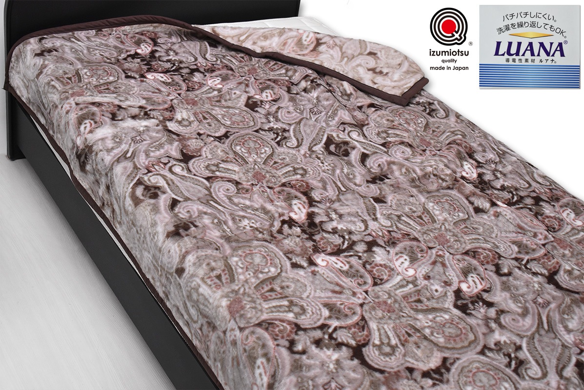 この製品は、日本毛布工業組合が定めた品質基準をクリアし、各種の仕上げ加工、縫製加工等のすべてが日本で行われています。サイズ140×200cm、約1.5kg、日本製生地・素材パイル糸(毛羽部分):アクリル100%、地糸:ポリエステルルアナ静電気防止加工カラーブラウン