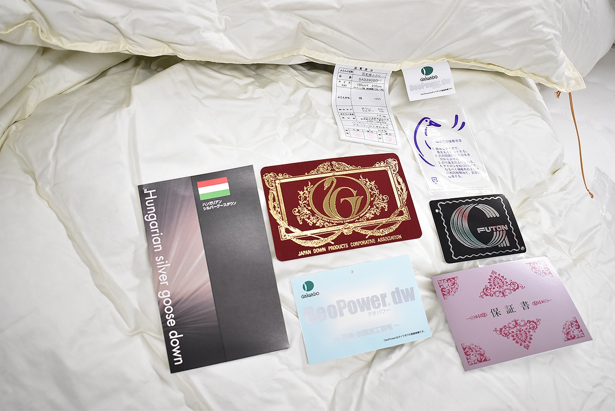 このエクセルゴールドラベルの付いている羽毛ふとんは、日本羽毛製品協同組合の品質基準に合格したものです。