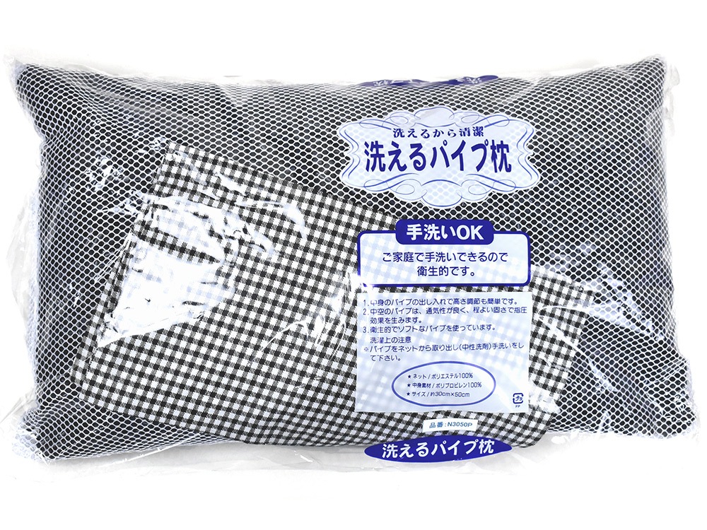 ギンガムチェックの枕カバー付き。パイプとカバーの色を合わせて製品化されたナチュラルカラーPPパイプ枕シリーズです。