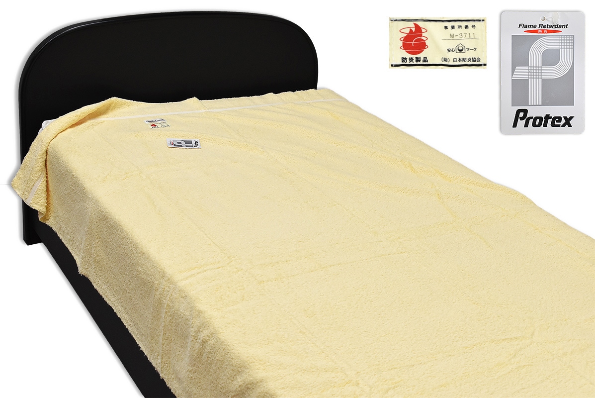 安心のマーク、日本防炎協会「防炎製品ラベル」付きタオルケットです。