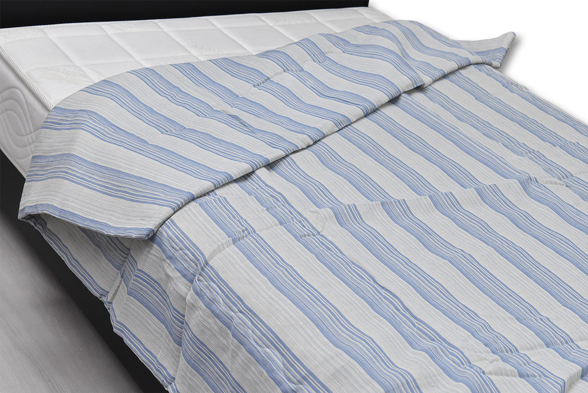 企画・デザイン:日本。 製造:中国製。サイズ(S) 140×190cm、製品重量 約0.85kg、Made in China生地・素材側生地:綿88%・麻12%(しじら織)両面中わた:ポリエステル100%、0.3kg入カラー2