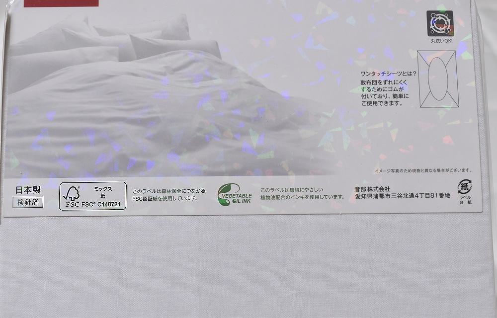 天然素材 綿100%、ゴム周かぶせ式シーツタイプ。