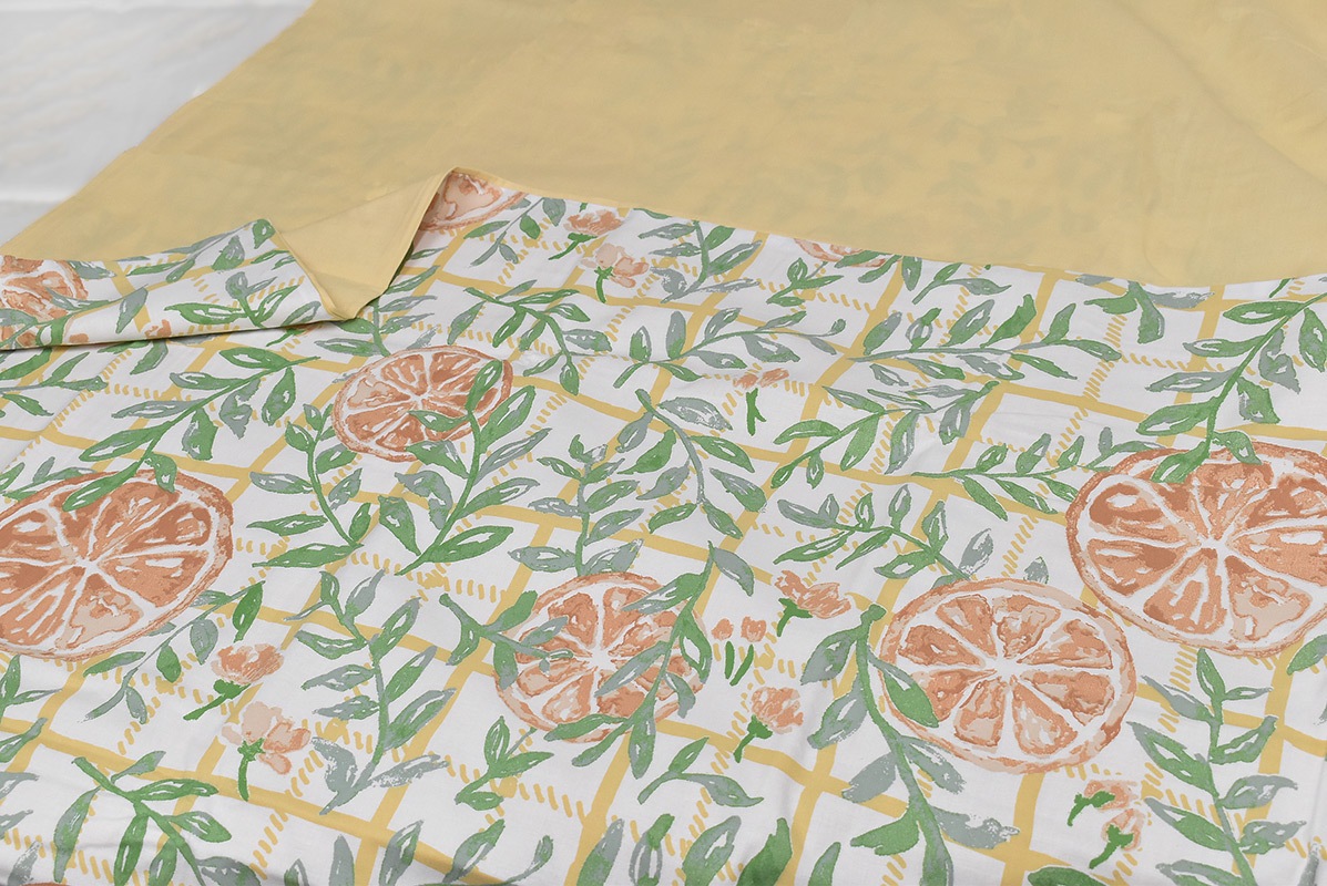 シトラスフルーツ、オレンジモチーフ 輪切りの柑橘類。ロマンスアミーのふとんカバーは、快適な眠りを追求する方に最適な選択です。 天然素材の綿100%を使用し、肌触りが自然で心地よい寝心地を提供します。