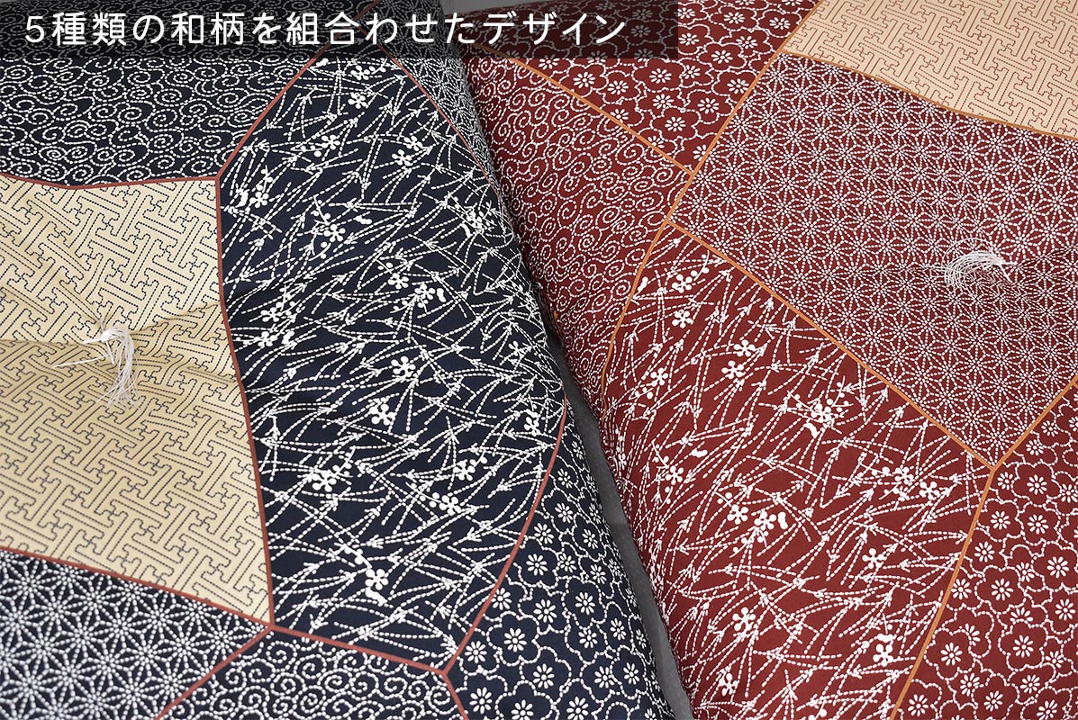 お手頃価格です。日本製。※製品サイズや生地のカットにより、柄の出方は多少異なります。サイズ銘仙判 55×59cm、製品重量 約1.2kg、Made in Japan生地・素材側地:綿100%プリント、房糸:ポリエステル詰めもの:綿わた入りカラー2