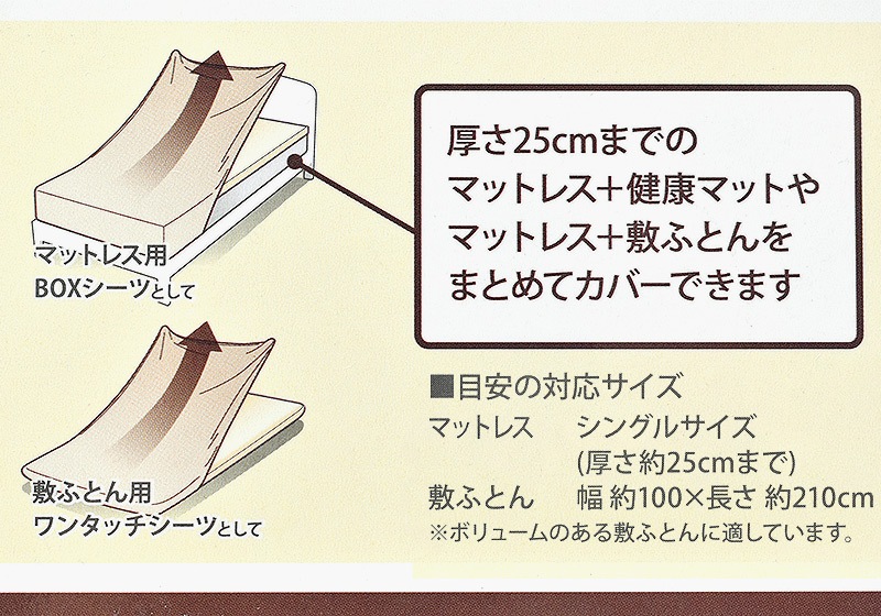 ● 中厚のマットレス上に敷ふとんの場合も、まとめてカバーできます!