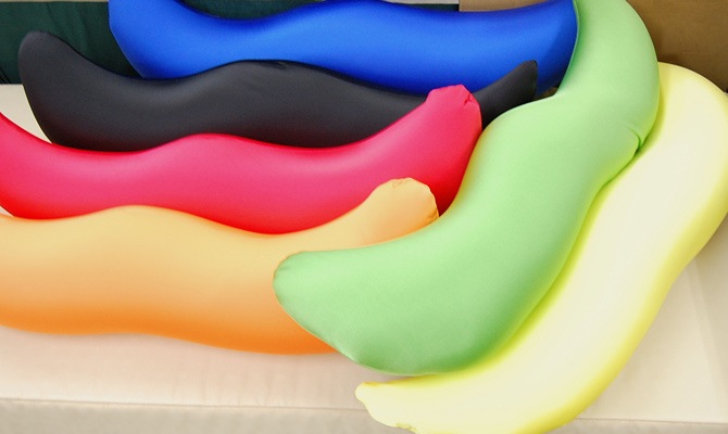 ナノビーズクッションは材質が軽く負担をかけません。ソフトで伸縮性があるため安定感があり、どのような体勢でもクッションが体重を分散して支えてくれます。サイズ約 38×115cm、日本製生地・素材側生地:ナイロン80%・ポリウレタン20%ビーズ:ポリスチレンカラー6