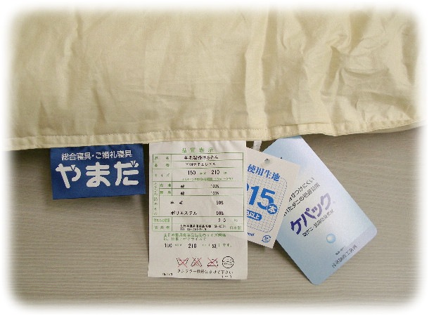 ツチ8ヶ所、日本製生地・素材側地:綿100%(205本以上打込)羊毛50%、ポリエステル50%(防ダニ、抗菌防臭)、わた量2.8kgカラーベージュ