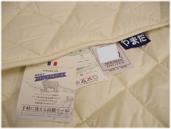 ◆ フランス産上級特殊加工ウールの中わた。 フランス産で洗毛された高級羊毛は独特な程良い弾力性。