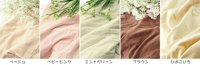 - 肌ざわりの柔らかい2重織りガーゼ。人にやさしく、こだわりの縫製で作りました。