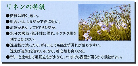 麻は20種類近くありますが、衣料用で「麻」と品質表示ができるのはラミー(Ramie)とリネン(Linen)に限れられています。