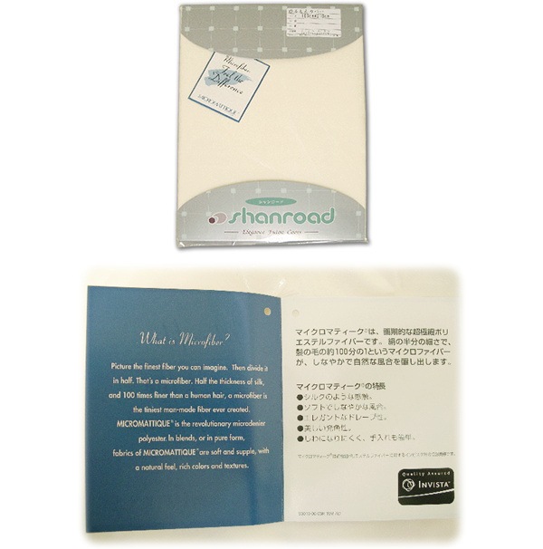 マイクロマティーク®は、シルクよりも細い画期的な超極細ポリエステルファイバーです。インビスタ・マイクロマティーク 平織(MF-210)は米国インビスタ社のウォッシャブル中綿(ダクロン綿)のコンフォレル(スパイラルタイプ・つぶわた)、クォロフィル、ホロフィルII の専用側地として開発された、ウォッシャブルふとん側地です。