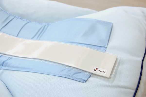 ネック部分の中材はソフトパイプですので、サイドのファスナーを開けて中材を取り出すことによって快適な高さに調節することができます。わた量の調節も可能です。
