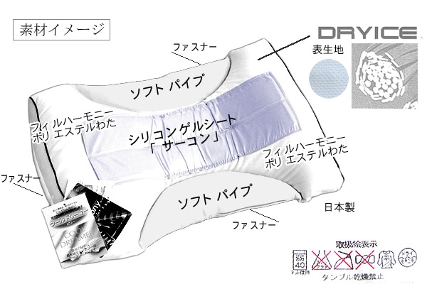 洗濯機で丸洗いできるので清潔。シリコンシートを取り出し、枕本体をネットに入れて洗濯してください。