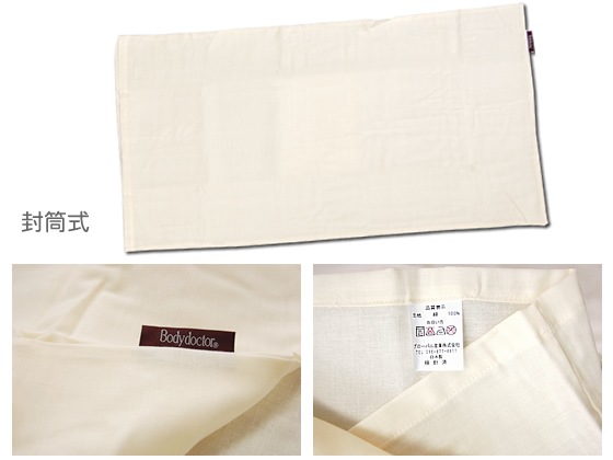※ドクターエアー枕にもご使用いただけます。サイズ48×90cm、封筒式生地・素材綿100%(ガーゼ)日本製カラーアイボリー