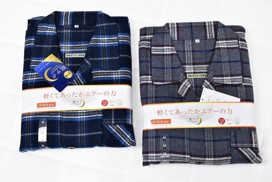 メンズ長袖パジャマ 格子柄 あったか綿100% 眠サポPREMIUM 日本製